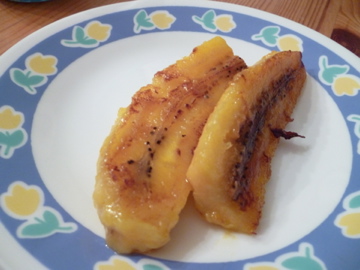 Of course, what's a good meal without a good dessert? It's Fried Plantains from Caribbean Vegan. Plantains + oil + skillet = YUM. Sweet, caramelized yum.